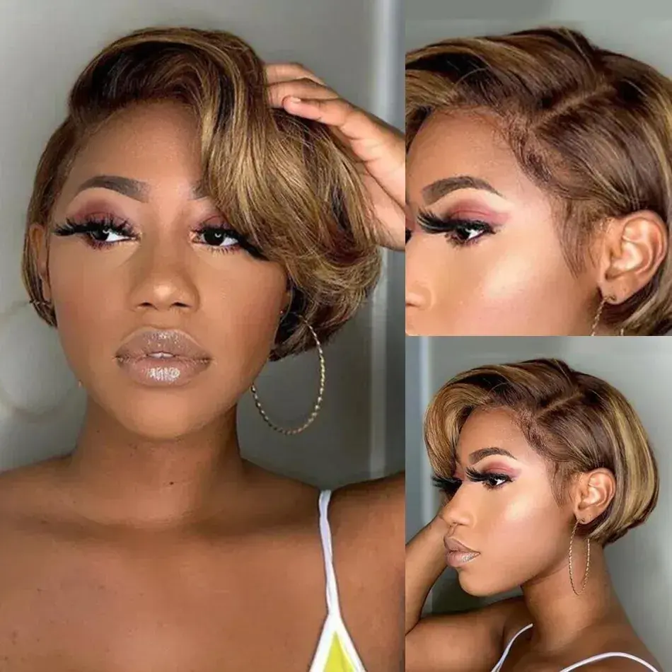 "Ready to Wear" Brown Mix HUMAN Wavy Pixie Wavy Bob Wig