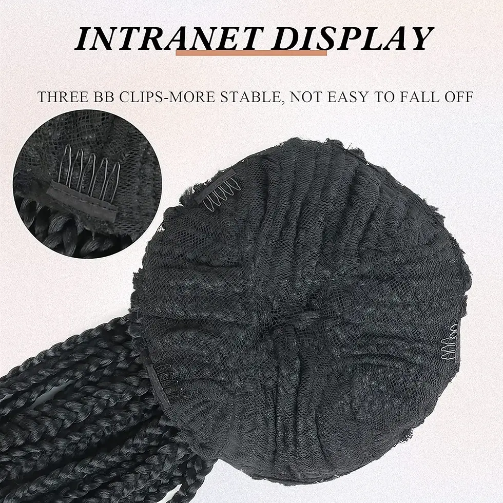 24" Glueless Black Box Braid Ponytail Headband Synthetic Hair Wig